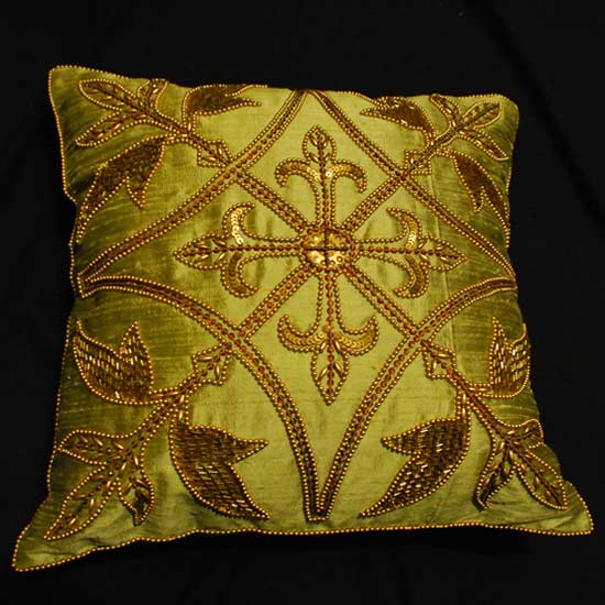 Displayed here is a classical square-shaped cushion that gives out a touch of regal elegance. This excellent silk cushion boasts embroidered bead details. Look no further for the ideal cushion for your sofa.