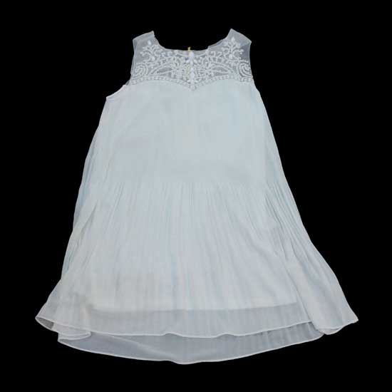 This flowy one-piece dress comes in snowy white, showcasing a touch of elegance. The chest part features delicate embroidery for a sophisticated look. This dainty silk dress pairs well with high heels and ballet flats.