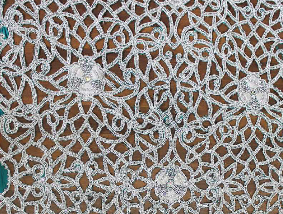 • This charming fabric is designed with delicate lace patterns for an attractive look.