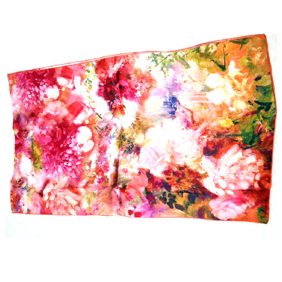 This silk scarf features an elaborate pattern of different floral patterns. The latter are in a kaleidoscope of vivid colors which are visually appealing. The high-quality materials used make this scarf an ideal choice for all seasons.
