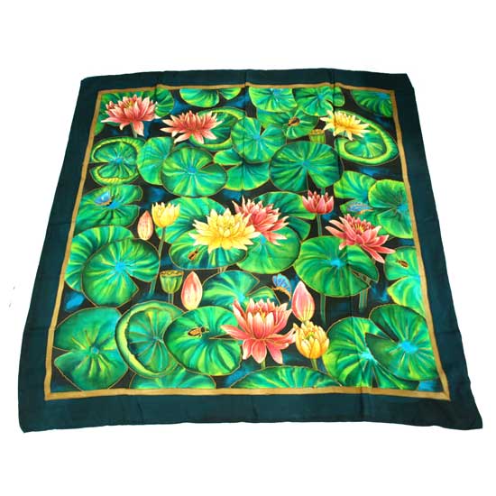 This scarf showcases delicate hand-painted lotus patterns. It is made of top-grade silk for extra smoothness and comfort. The scarf complements most outfits perfectly.