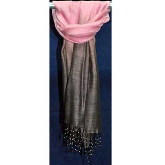 Pictured here is a long scarf utterly made of silk. This piece is embellished with attractive crystal fringes. The scarf shields your neck against the cold while accessorizing your overall attire.