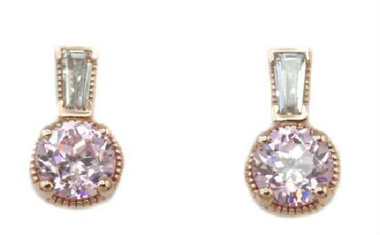 SILVER AND ZIRCONIA EARRINGS 1.9gm 2CZPI RDBR 6mm (65cut) 2CZWH TPST 5X2.5X1.8mm (RHR)
