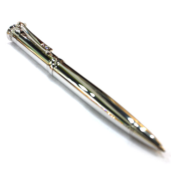 The exquisite ball pen features a round barrel in a glossy mirror finish. Crafted of silver, the ball pen delivers a durable, tarnish resistant finish. This stylish ball pen makes a great promotional business gift.