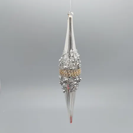 Item Name: Silver Beaded Icicle Christmas Ornament Glitter Hanging Glass Decoration