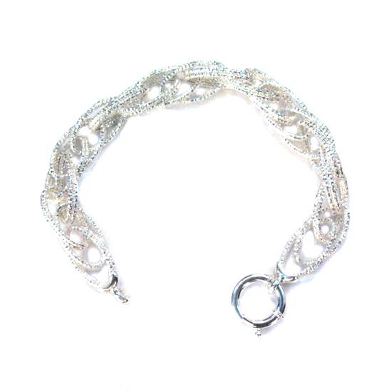 This bracelet is fully equipped with diamonds. It features a lot of oval-shaped silver pieces, all of them holding tightly with the next ones. At the first glance, the piece looks overwhelming, because of the number of diamonds and ovals. But it won't take long to figure out the pattern, and appreciate the craftsmanship.