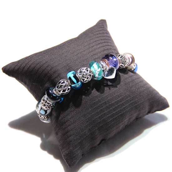 The displayed bracelet features bright glass beads and silver decorations for a stylish touch. It is meticulously crafted to add spice to your outfits. There are various bracelets available for your selection.
