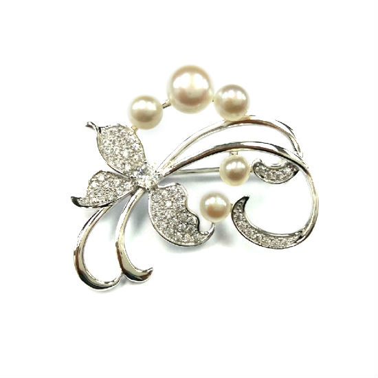 • Silver Brooch, Cubix Zirconia Stone,and Fresh Water Pearl