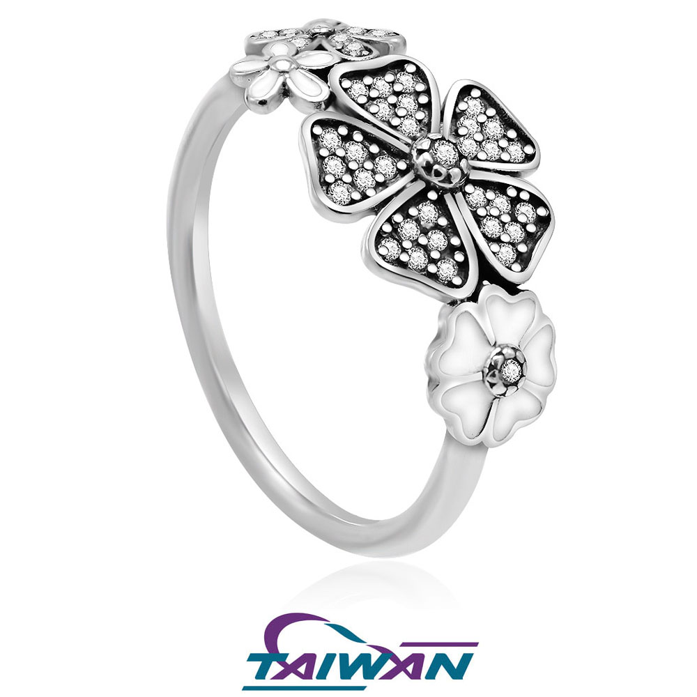 Silver CZ Floral Ring