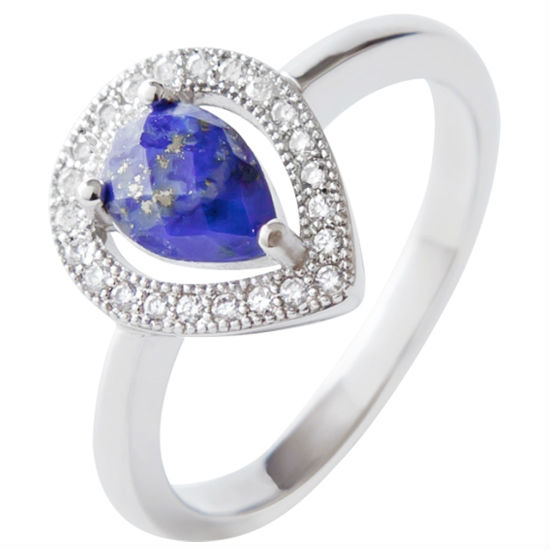 Enrich your jewelry collection with this stone ring. It is exquisitely crafted with a luxurious and idiosyncratic look. Featuring a large faceted water drop shaped stone at the center and the CZ stones surroundings, a deluxe touch is added to the ring.