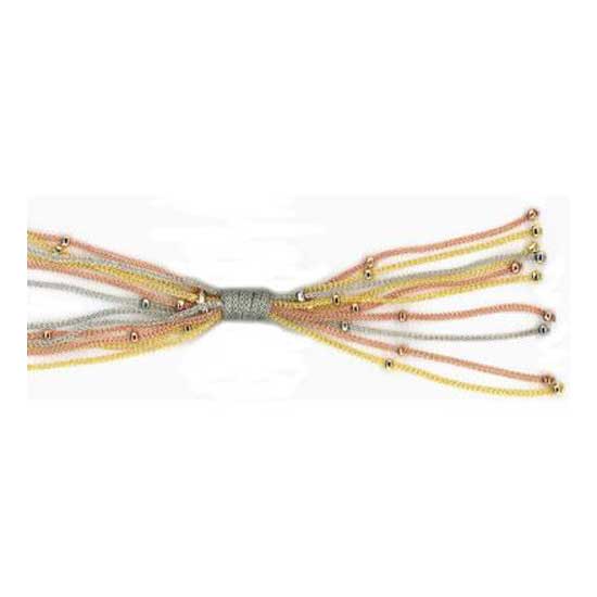 This stylish chain features numerous cords of various colors. These lovely cords are held together by a gray knot. With tiny colored beads scattering along each cord, the chain becomes more gorgeous. Complete your jewelry collection with this chic chain.