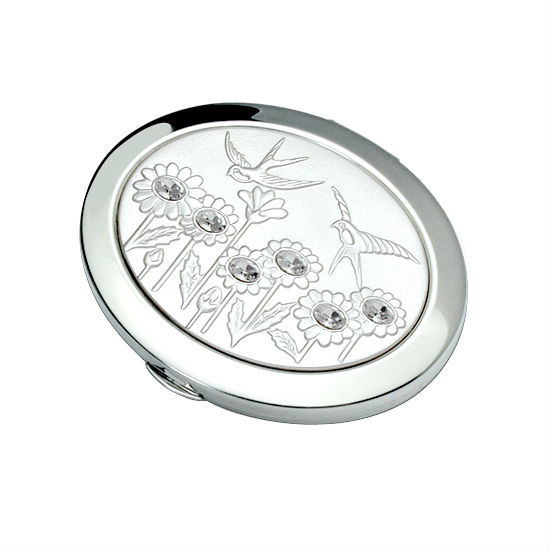 • Shiny Nickel Plated with white crystals & barn swallows in Matt Silver Plated
