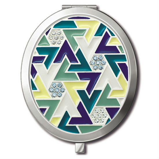 Oval shape.   Embossed hexagon pattern in colors with enamel painted and color stones.