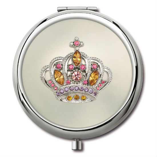 Silver Crown Compact Makeup Mirror Case
