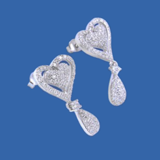 This is a pair of stylish earrings with a fashionable and modern design. The earrings are crafted with sparkling diamonds for added elegance. This pair of silver diamond earrings makes a pretty way to complement your chic look.