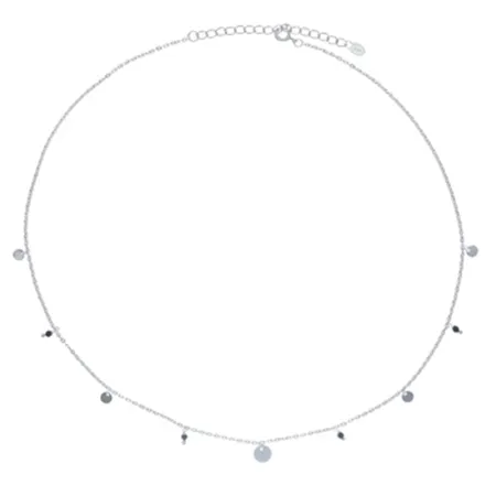 Silver Disc With Black Agate Spheres In Chain Necklace