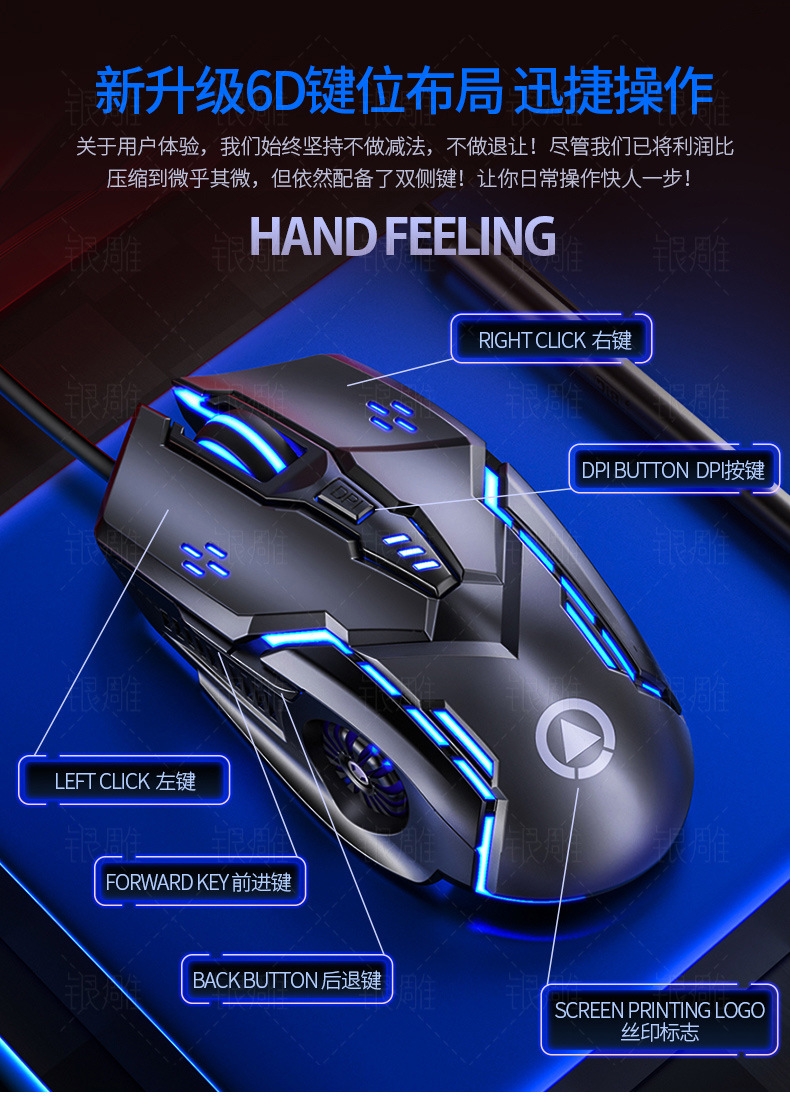 Silver Eagle G5 Wired Mouse Luminous Gaming Machinery Silent Computer Accessories Gaming Mouse Game competitive mouse Cross-border