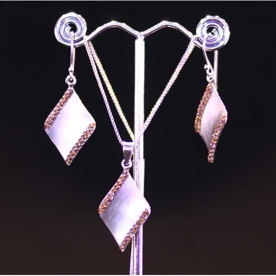 The outlined pair of silver earrings with a delicate design. They are set with smoked topaz stone and Austrian crystals for added glamour. The silver earrings are easy to mix and match.