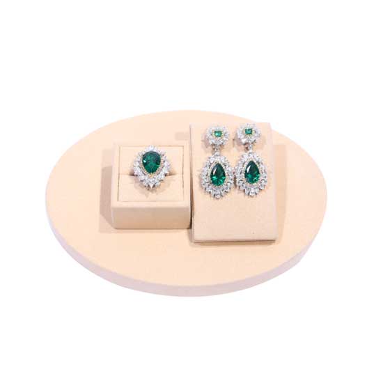 This is a pair of earrings with an elegant and deluxe appearance. Each piece features a sterling silver mounting with sparkling white CZ stones around a big green stone. This pair of attractive earrings goes well with your fashionable evening gown.