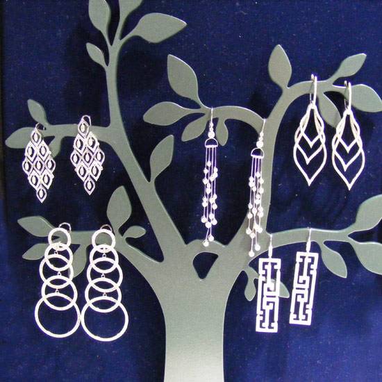 These are various types of drop earrings in 18K white gold. They come in concentric designs and with fancy motifs. Feature white diamonds adds sparkling style and fire to the earrings.