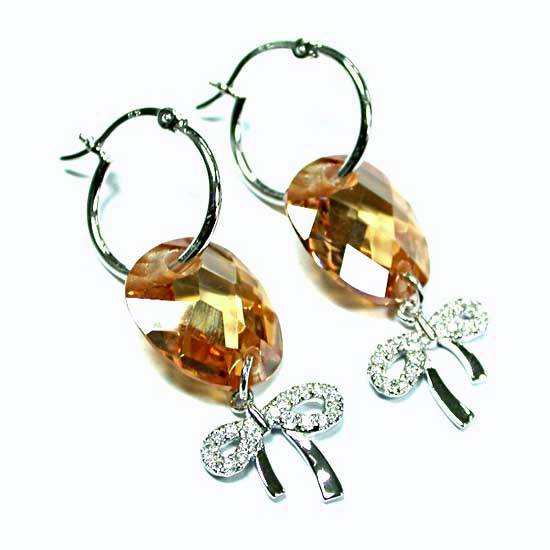 The silver earrings flaunt pear-shaped cubic zirconia stones in yellow. The ribbon-like ornaments deliver a touch of femininity. These silver earrings make a great match with your one-piece dresses.