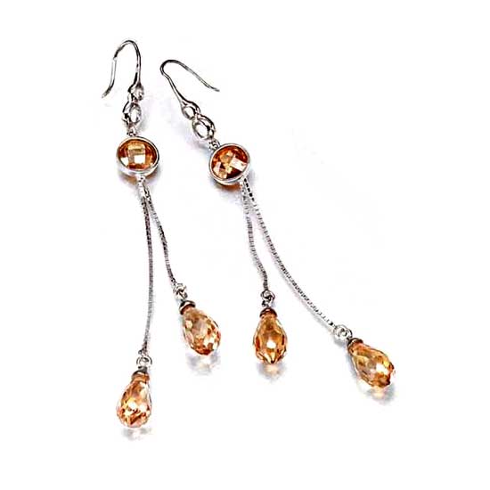 The pair of earrings touts a dangling design accented with two sparkling stones. The sterling silver construction promises years of glamor. This pair of shimmering earrings makes a chic addition to your jewelry collection.