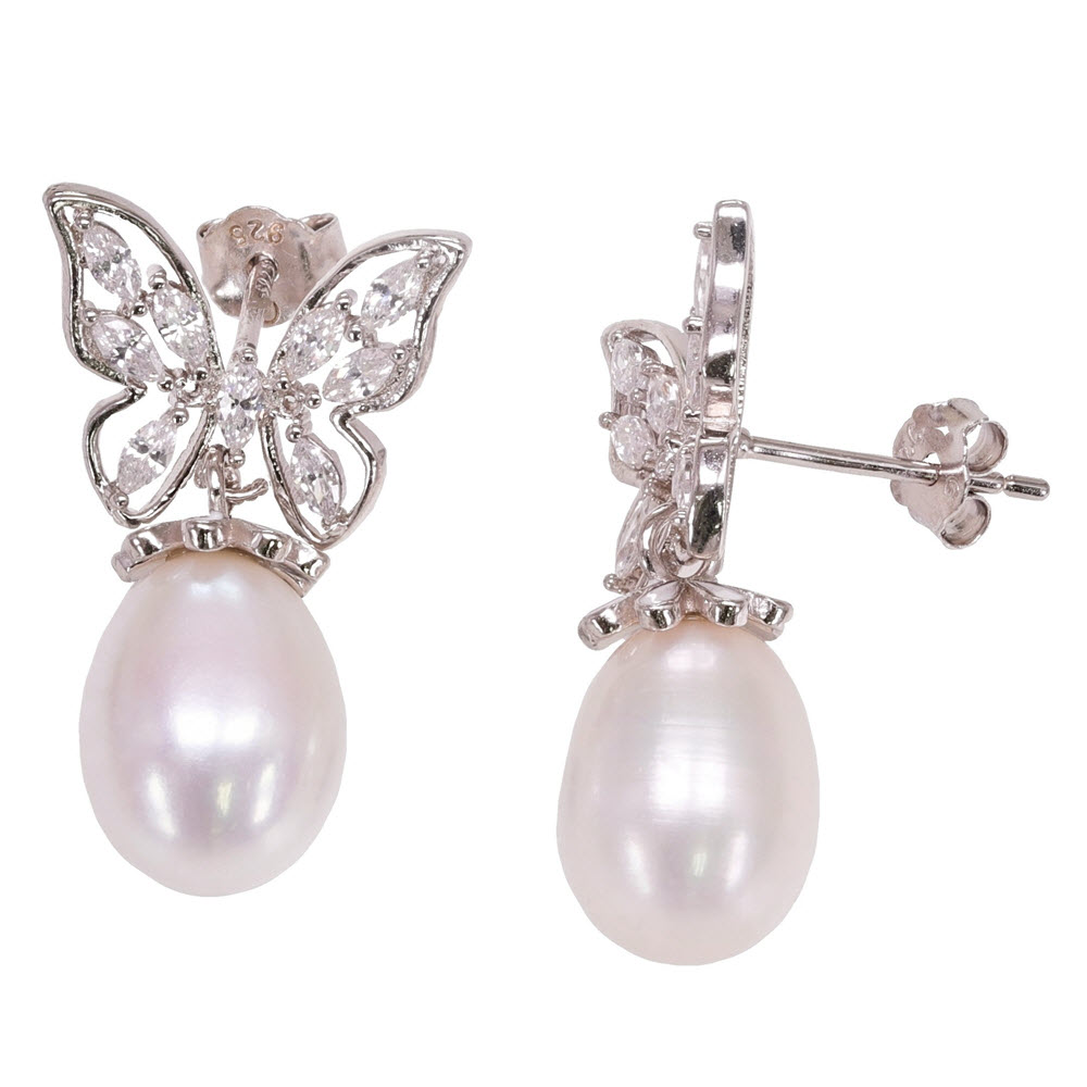 Silver Fresh water pearl CZ Earring