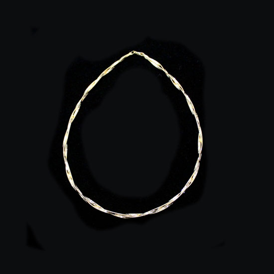 This is a silver gold necklace coming with a twisted design. The jewelry clasp is durably constructed for a long service life. It will certainly add grace and charm to your overall outfit.