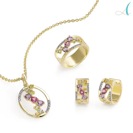 Sterling Silver Jewelry Set with Vermeil Gold Plating set with Amethyst, Pink Topaz, Peridot & White Topaz