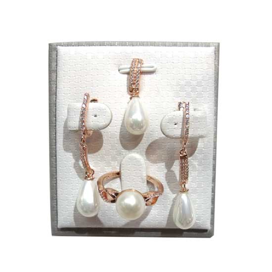 This series of jewelry comes with a finger ring, a pair of earrings, and a pendant. Each piece boasts an elegant and chic design with a freshwater pearl embellishment. The sparkling elements make this series of jewelry look more trendy and charming.