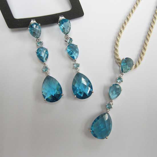 This silver jewelry set comes with a pair of earrings and a necklace. The colored quartz gemstone in blue is dazzling and alluring and helps catch people’s attention. This silver jewelry set is a nice choice to go to parties with.