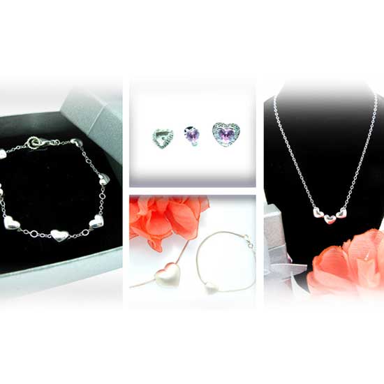 This attractive jewelry set is comprised of a necklace, a bracelet, a pendant and earrings. They feature a heart shaped design for luring ladies’ hearts. This sophisticated jewelry set is made of 925 silver in rhodium plating.