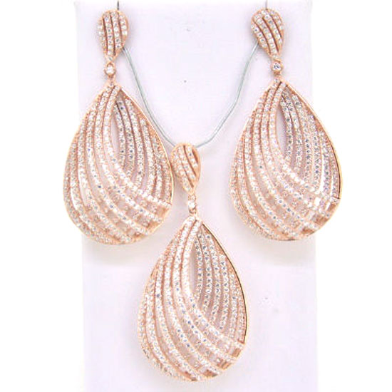 This jewelry set comes with a pendant and a pair of earrings. This jewelry set is made of sterling silver for a long service life. The dazzling CZ stones are added for a glamorous and elegant touch.