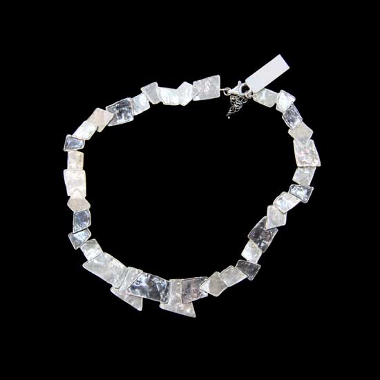 The displayed necklace comes with irregular black and white plates for a cool touch. It is made of quality silver to ensure a long lasting shine. This outstanding silver necklace is a great complement to your funky outfits.