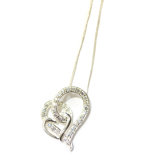 This silver necklace comes with a fashionable and luxurious design. It is crafted with dazzling CZ stones for an eye-catching look. The pendant is designed in a heart shape for a touch of style.