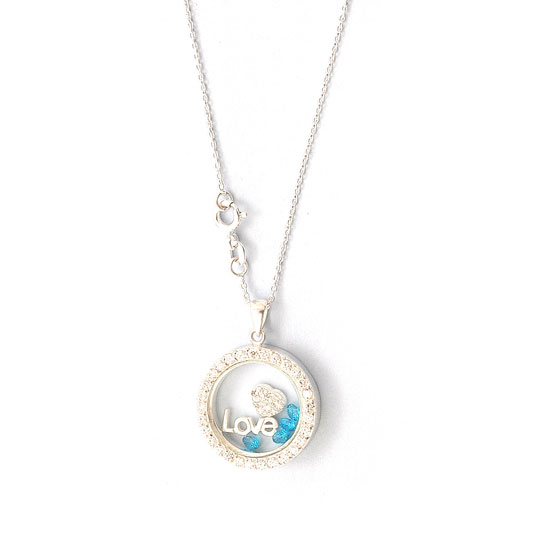 This silver necklace comes with the word “love” for a sweet touch. It is crafted with dazzling blue and white stones for an elegant touch. This well-designed necklace is a great gift choice for your beloved one.
