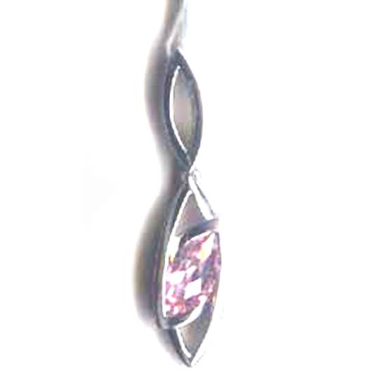 This is a 925 silver pendant decorated with pink cubic zirconia. The drop pendant features two hollow leaves embellished by a pink stone as the dangling. The stylish and fashionable pendant is perfect for making ladies' necklaces.