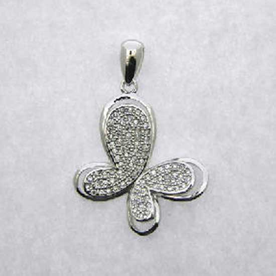 Displayed is a silver pendant that comes in a lovely butterfly shape. Plated with rhodium and paved with CZ stones, this silver pendant is shiny and sparkling. This beautiful silver pendant is great for everyday wear.