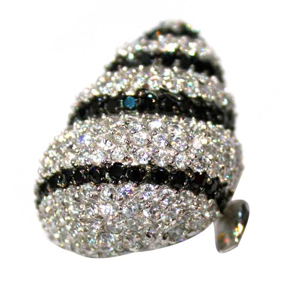 The exquisite 925 silver ring features a teardrop-shaped design for a touch of style. It is encrusted with white and black CZ stones for brilliant shimmer. Embellish your hands with this gorgeous ring.