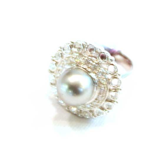 This finger ring features an exquisite round decoration on top. The latter is highlighted by a plump round pearl with a captivating luster. This ring is an easy-to-match complement to any high-end fashions.