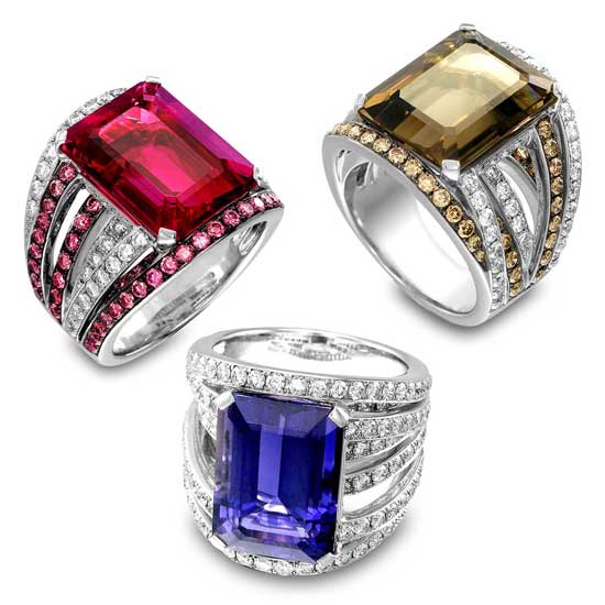Showcased are three silver-made rings with thick bands. They are accented with a rectangular-shaped rhinestone in the center with small shiny stone setting. These rings are great for complementing your outfits.