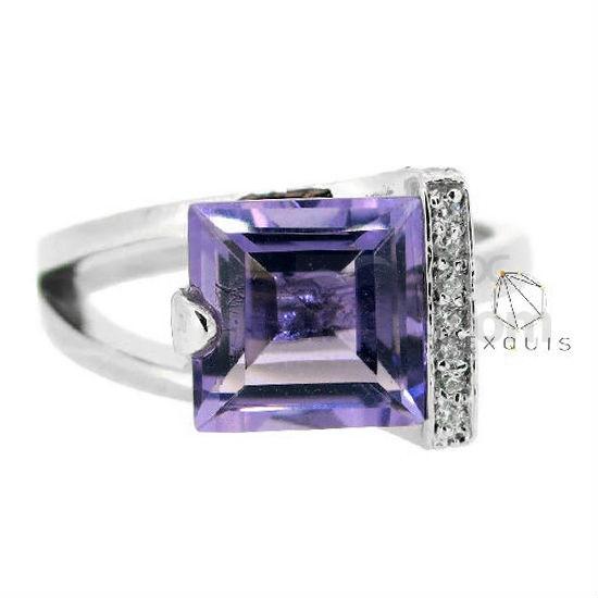 • Made with sterling silver and amethyst (10mm square faceted cut amethyst)