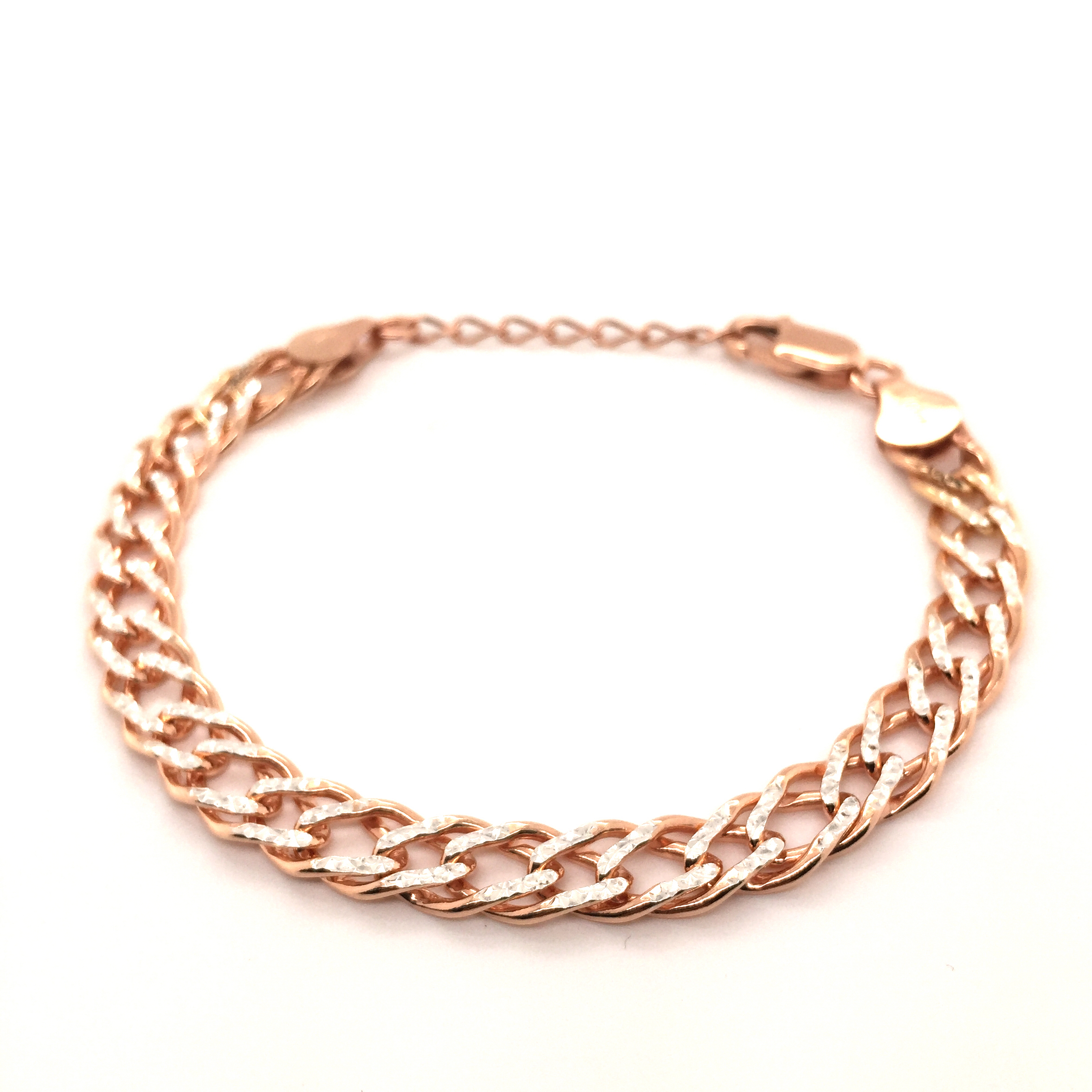 • Silver Rombo Chain, Paved, 7.2mm, Rose Gold Plated, 16+3cm