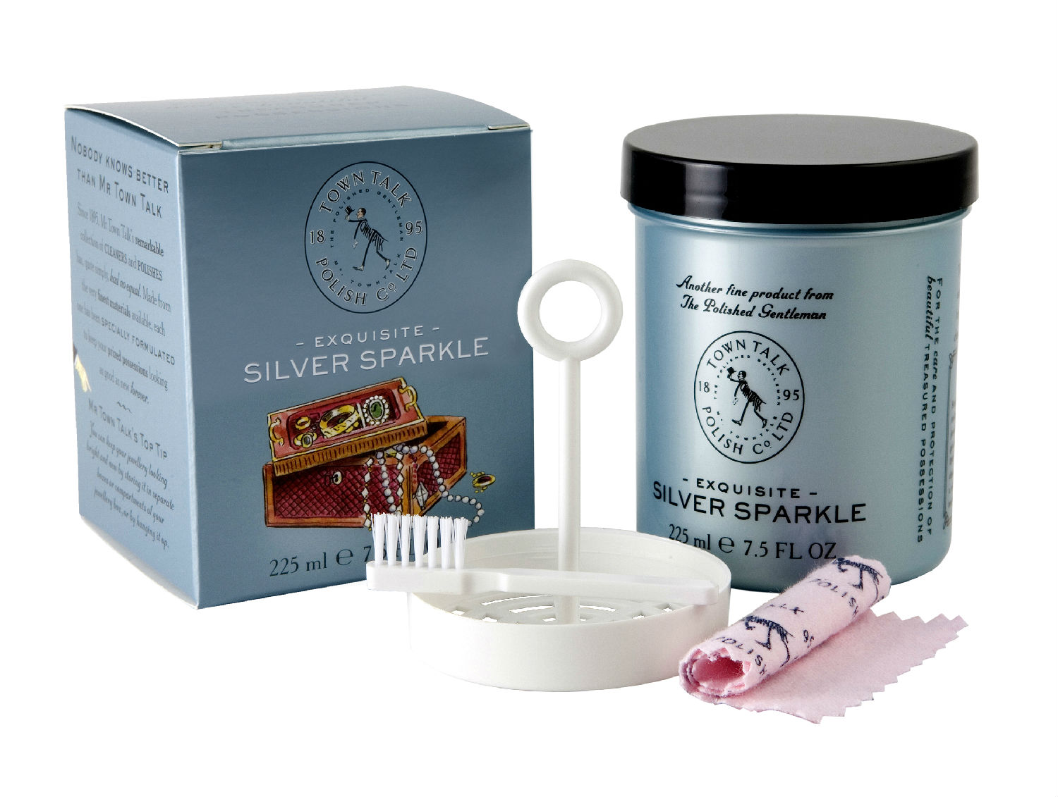 • An easy to use silver jewellery cleaner dip, leave for two minutes, rinse, dry and polish with the specially provided silver polishing cloth.