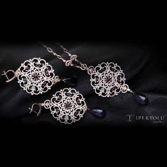This beautiful jewelry set of a necklace and a pair of dangle earrings is specially designed to entice the new generations. The extravagant flower patterns adorned with multi-colored crystals are pleasing to the eyes. These splendid jewelry pieces can largely grace your sophisticated look.