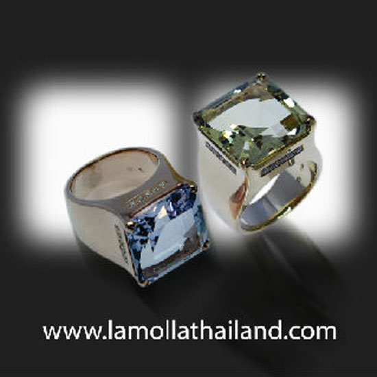 This semi-precious stone ring is large, plain, elegant and affordable. A beautiful square-shape semi-precious stone is tension-set in the center. Pave-set round white CZ stones add extra detail to this ring.