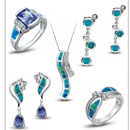 Silver Synthetic Inlay Opal Jewellery with pendant, earring & ring