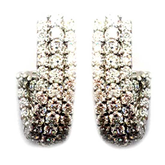 Featured here is a pair of stunning earrings in semi-loop designs. The earrings shimmer with three rows of white CZ stones on the silver setting. These pretty earrings are wonderful accessories for any occasion.