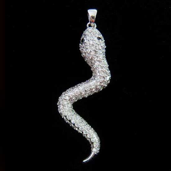 This stylish pendant vividly features the design of a snake. The pendant is paved with 132 pieces of white and black CZ stones for a shimmering look. A polished bail adds style and functionality to the pendant.