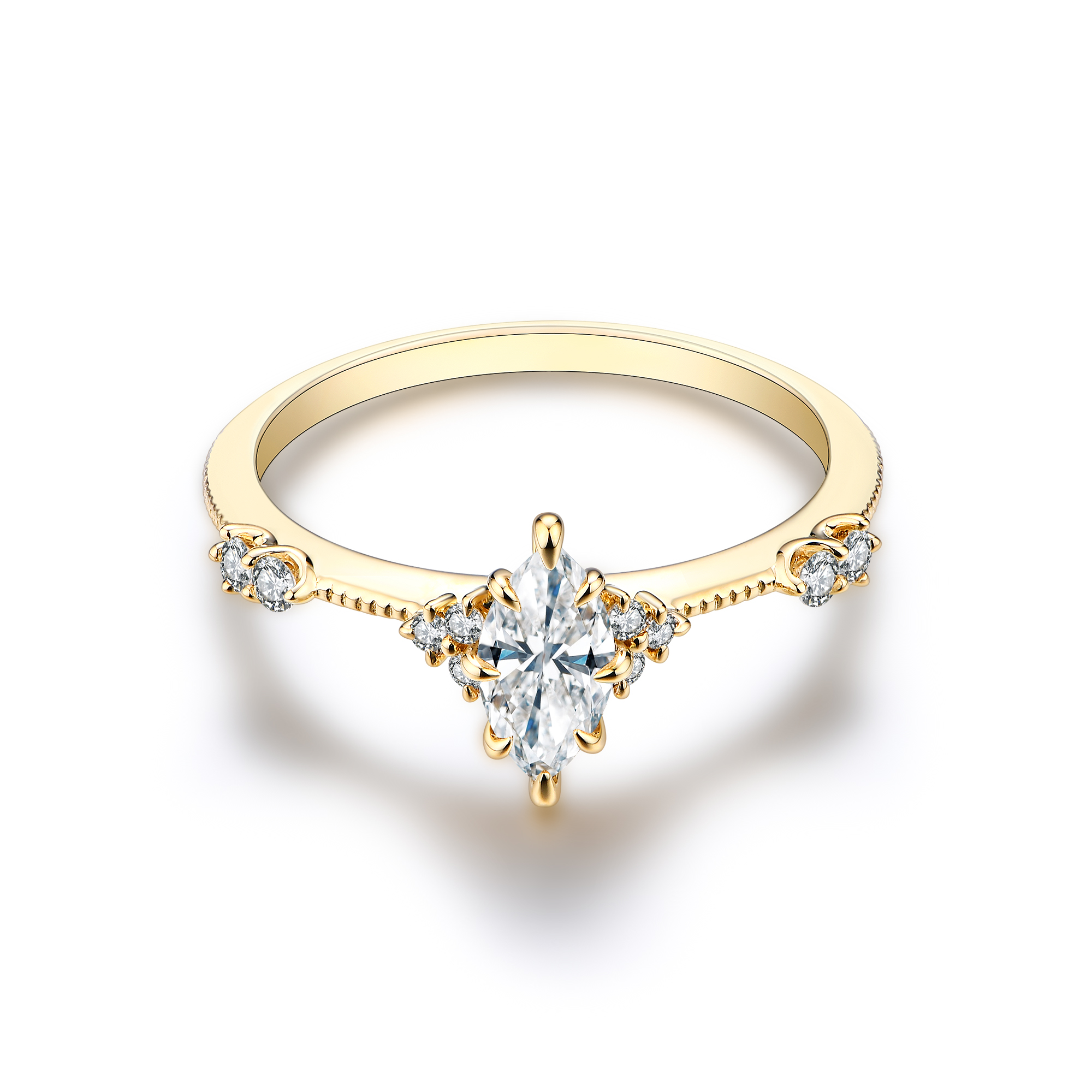 • Natural Round White and Marquise White Diamond in 18K Yellow Gold.